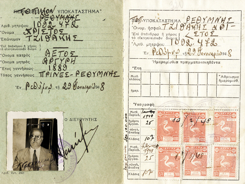 National Insurance booklet of Christos Aetou Tzifakis, Rethymno, 22 January 1948.